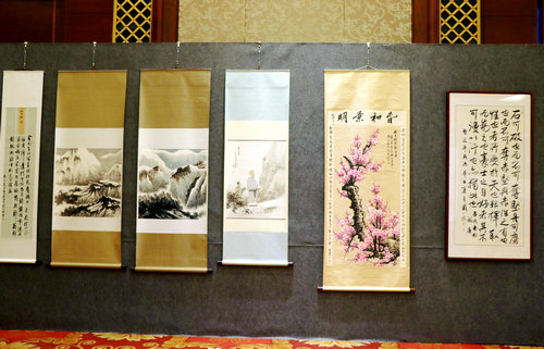 當原吉安市市委常委郭慶亮宣布書畫展開幕后,各位領導嘉賓在組委會工作人員的帶領下,王云鵬先生的陪同下移步展廳開始參觀展覽。