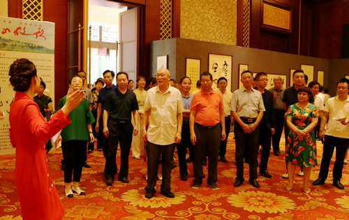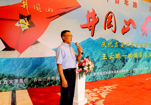 中國健康新聞網訊:為慶祝中國共產黨建黨100周年,重溫黨的光輝歷史,謳歌黨的豐功偉績。2021年6月20日上午10時許,由江西文演集團、吉安江蘇商會主辦;深圳王云鵬書畫藝術研究發展有限公司、北京宣和書畫藝術研究院協辦的《井岡山放歌——王云鵬鵬體草書及友人書畫展》開幕式,在江西吉安市吉安賓館會議中心一樓隆重舉行。
